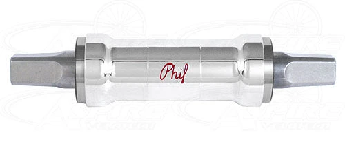 This bottom bracket features Phil’s 17mm proprietary U.S. produced heat-treated stainless steel spindle. This special spindle provides you with maximum durability and an absolute minimum amount of flex. The Phil Wood sealed cartridge bearings have the same seals as those used in submersible pump bearings. This integral one piece shell seals out contamination, keeping your bearings super smooth. Phil’s unique trademark cupped flats provide superior crank arm retention.