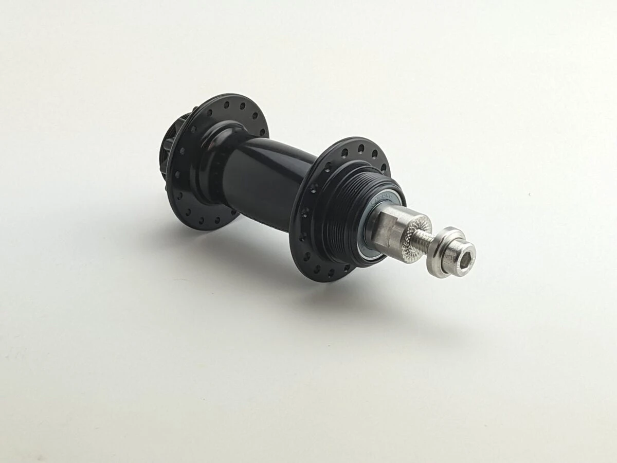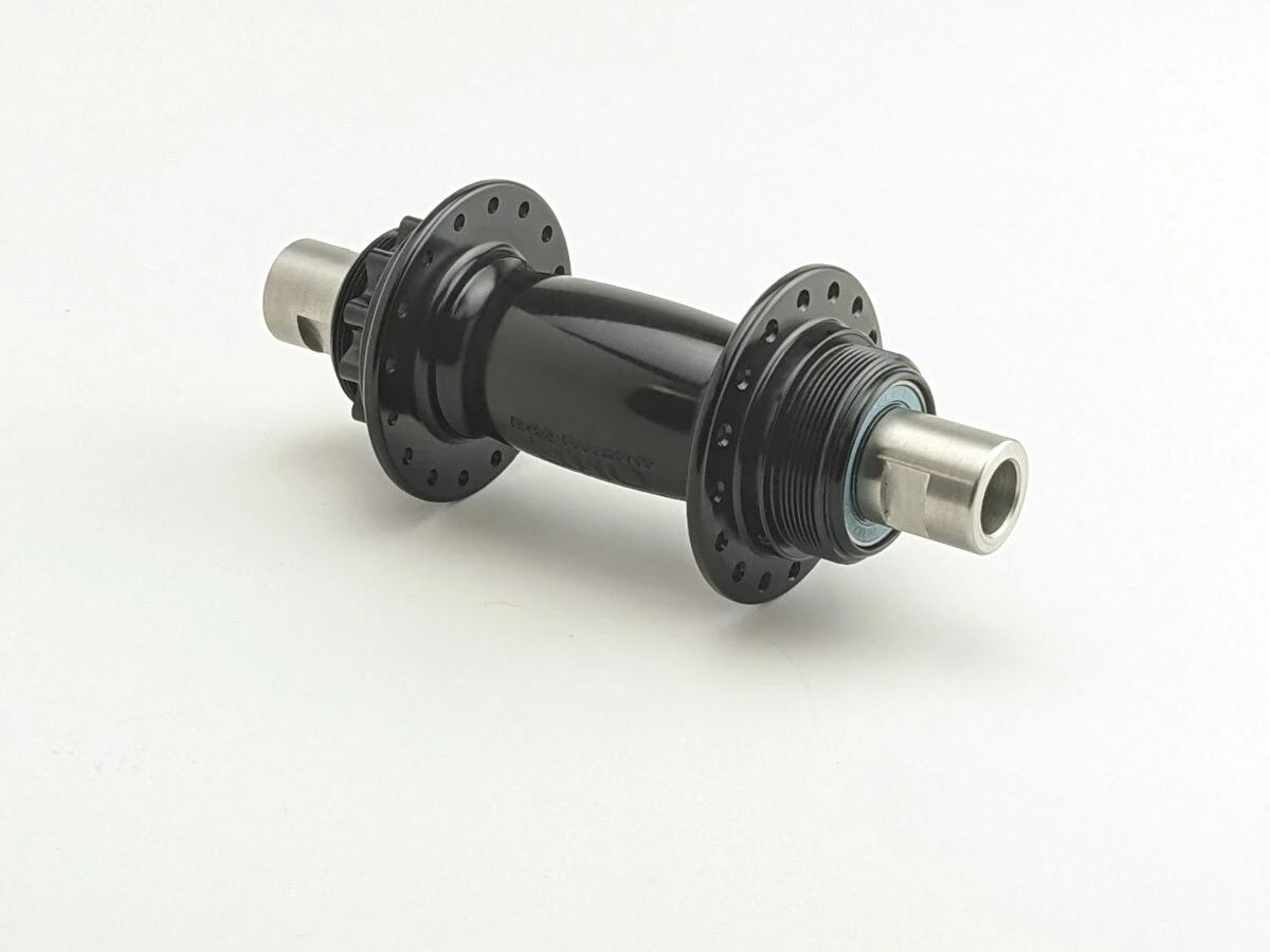 This hub allows a rider to adjust chain tension by simply rotating the elliptical axle ends up and back in the dropouts. As the hub rotates back the chain is pulled into tension.