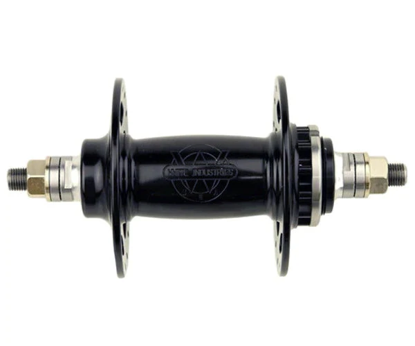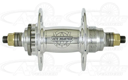 This Rear Hub is part of the White Industries Track Hubset which is designed in a traditional vintage style with high flanges and window cut outs. Solid threaded axles are graced with bronze axle nuts to set off the beauty of these hubs. The matching cogs are made out of 8620 case hardened steel with an electroless nickel plate finish.